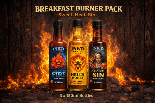 You'll need this to survive the burn. 3 sauces + 1 INK'D stubby cooler.